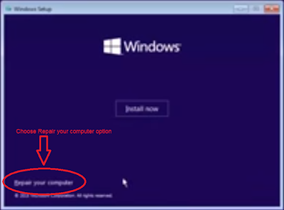Step 2 - Change BIOS setting to boot computer from USB drive or press a key (which will give you option to boot computer from USB drive) to boot from USB . Choose "repair your computer" from below -